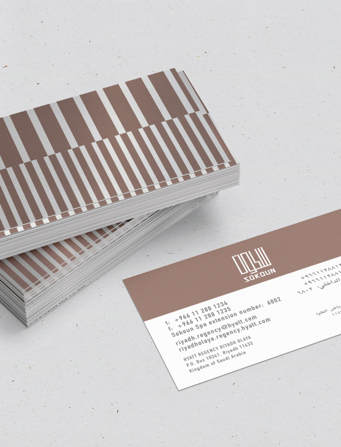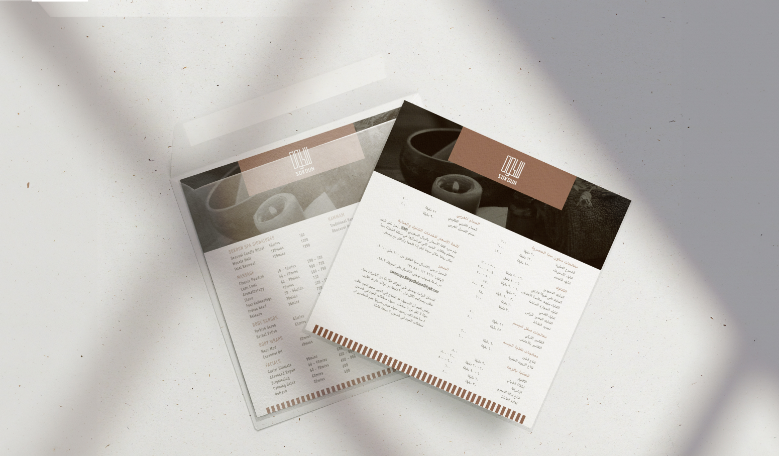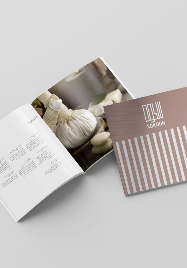 Sokoun Spa faced the challenge of establishing a brand identity that would effectively convey its commitment to luxury and tranquility in a highly competitive wellness market within Saudi Arabia. The spa needed a brand that not only reflected its high-end services and advanced facilities but also resonated with the cultural and spiritual values of its clientele. They sought a design that could seamlessly integrate their diverse offerings—massage therapies, fitness facilities, and luxurious amenities—into a cohesive identity. Additionally, Sokoun required bilingual print materials to cater to both Arabic and English-speaking guests, ensuring accessibility and inclusivity.